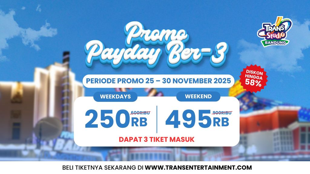 Pastikan kamu tidak melewatkan promo ini, catat tanggalnya hanya berlaku pada periode 25-30 November 2025. Kesempatan tidak datang dua kali, moment baik jangan ditunggu tapi harus diciptakan. Jadi, segera amankan tiketmu di www.transentertainment.com.