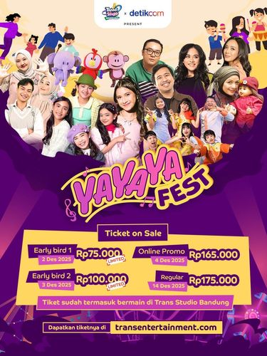 Jadi sudah siap menyambut untuk bernyanyi, jajan, foto-foto dengan para idola, bermain wahana dan pulang dengan hati yang terasa lebih hangat. Beli tiketnya sekarang juga, karena kesempatan ini sangat terbatas! Dan jadikan YAYAYA FEST menjadi momen kecil bahagia di penutup tahun bersama keluarga.