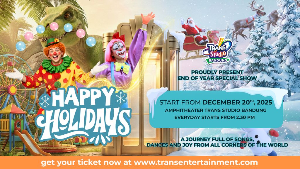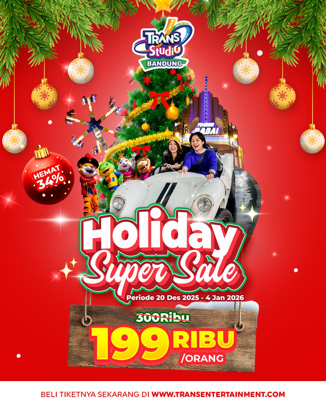 Catat tanggalnya promo Holiday Season ini Cuma di periode 20 Desember 2025-4 Januari 2026. Saatnya ajak orang-orang tersayang, dan book tiketmu lebih awal melalui www.transentertainment.com. Datang, rasakan sendiri suasananya, dan tutup tahun dengan tawa serta kenangan hangat di Trans Studio Bandung.